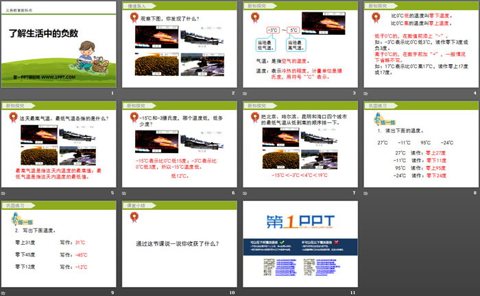 《了解生活中的负数》PPT