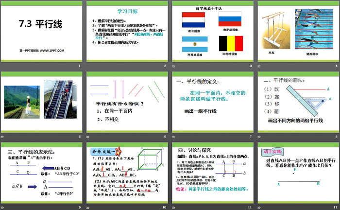 1、理解平行线的概念。