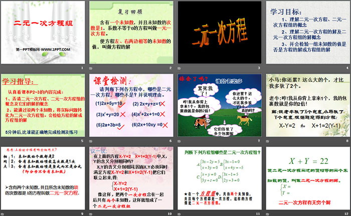 关键词:冀教版七年级下册数学PPT课件免费下载,二元一次方程组PPT下载,.PPT格式;