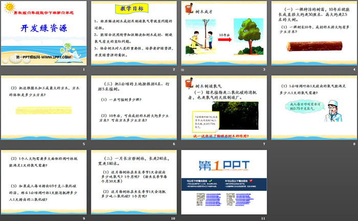 1、经历解决树木成材及制造氧气等现实问题的过程。