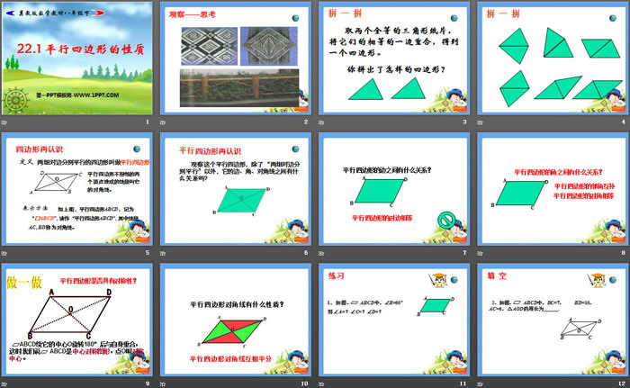 关键词:冀教版八年级下册数学PPT课件免费下载,平行四边形的性质PPT下载,.PPT格式;