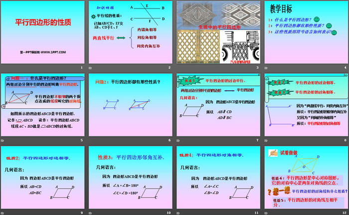 关键词:冀教版八年级下册数学PPT课件免费下载,平行四边形的性质PPT下载,.PPT格式;