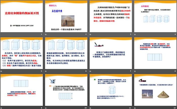 《直棱柱和圆锥的侧面展开图》PPT课件下载