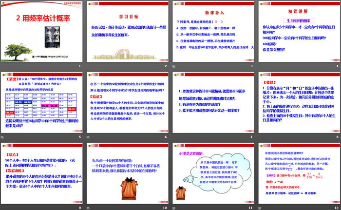 关键词:冀教版九年级下册数学PPT课件免费下载,用频率估计概率PPT下载,.PPT格式;