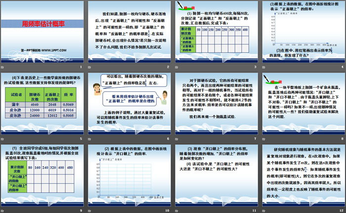 关键词:冀教版九年级下册数学PPT课件免费下载,用频率估计概率PPT下载,.PPT格式;