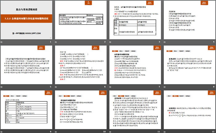 关键词:高中人教B版数学必修一PPT课件免费下载,全称量词命题与存在量词命题的否定PPT下载,集合与常用逻辑用语PPT下载,.PPT格式;