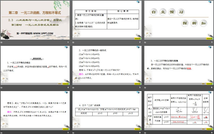 二次函数与一元二次方程不等式PPT,第二部分内容:自主预习探新知