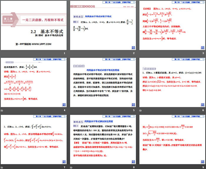 关键词:高中人教A版数学必修一PPT课件免费下载,基本不等式PPT下载,一元二次函数方程和不等式PPT下载,基本不等式的应用PPT下载,.PPT格式;