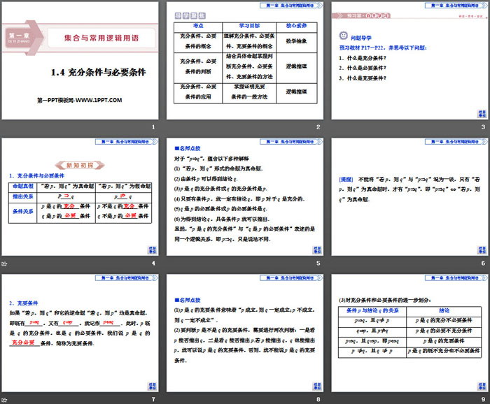 关键词:高中人教A版数学必修一PPT课件免费下载,充分条件与必要条件PPT下载,集合与常用逻辑用语PPT下载,.PPT格式;