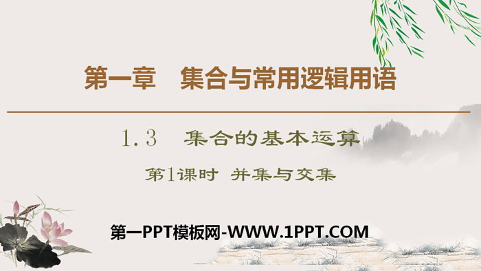 关键词:高中人教A版数学必修一PPT课件免费下载,集合的基本运算PPT下载,集合与常用逻辑用语PPT下载,并集与交集PPT下载,.PPT格式;