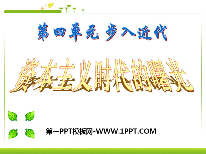 关键词:步入近代教学课件,资本主义时代的曙光教学课件,人教版九年级上册历史PPT课件下载,九年级历史幻灯片课件下载,步入近代PPT课件下载,资本主义时代的曙光PPT课件下载,.PPT格式;