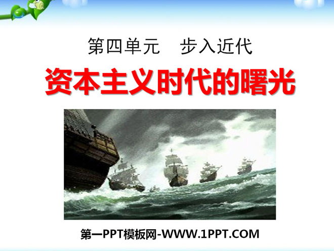 关键词:步入近代教学课件,资本主义时代的曙光教学课件,人教版九年级上册历史PPT课件下载,九年级历史幻灯片课件下载,步入近代PPT课件下载,资本主义时代的曙光PPT课件下载,.PPT格式;