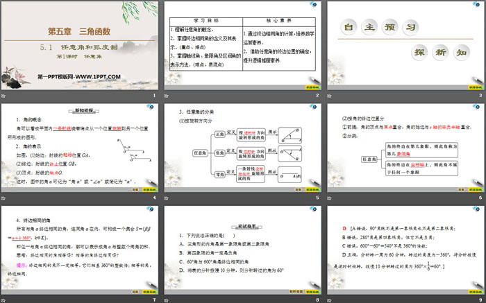 关键词:高中人教A版数学必修一PPT课件免费下载,任意角和弧度制PPT下载,三角函数PPT下载,任意角PPT下载,.PPT格式;