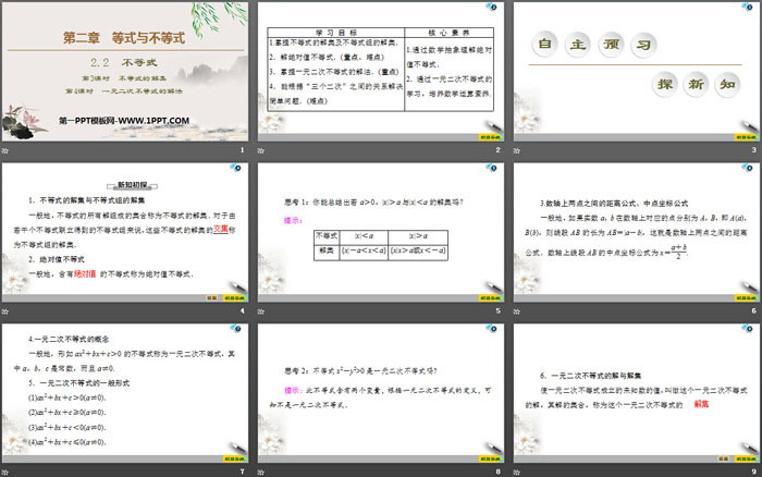 关键词:高中人教B版数学必修一PPT课件免费下载,不等式PPT下载,等式与不等式PPT下载,不等式的解集PPT下载,一元二次不等式的解法PPT下载,.PPT格式;