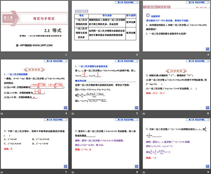 《等式》等式与不等式PPT(第2课时一元二次方程的解集及其根与系数的关系)