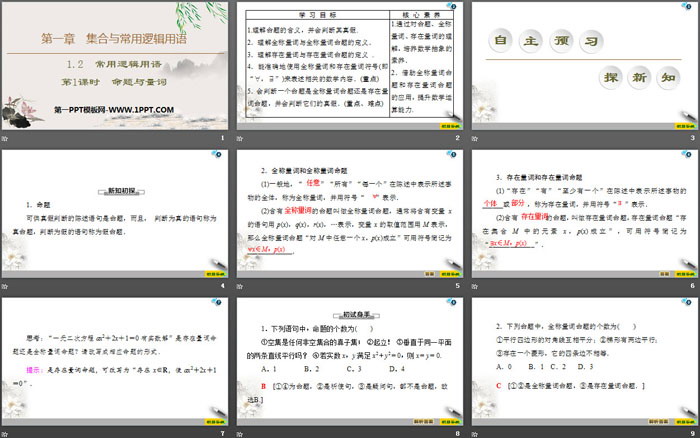 关键词:高中人教B版数学必修一PPT课件免费下载,常用逻辑用语PPT下载,集合与常用逻辑用语PPT下载,命题与量词PPT下载,.PPT格式;
