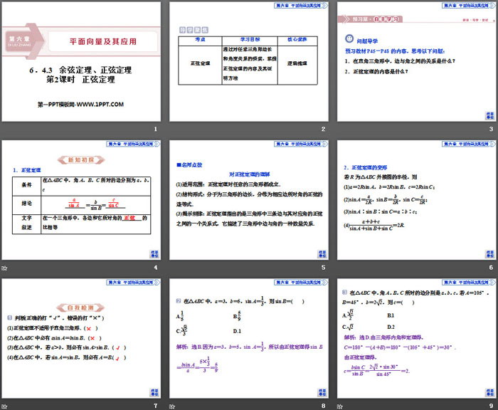 关键词:高中人教A版数学必修二PPT课件免费下载,余弦定理正弦定理PPT下载,平面向量及其应用PPT下载,正弦定理PPT下载,.PPT格式;