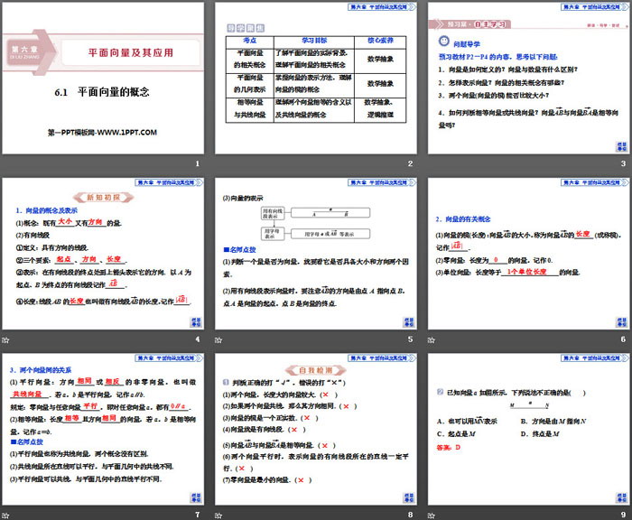 平面向量的概念PPT,第四部分内容:自我检测