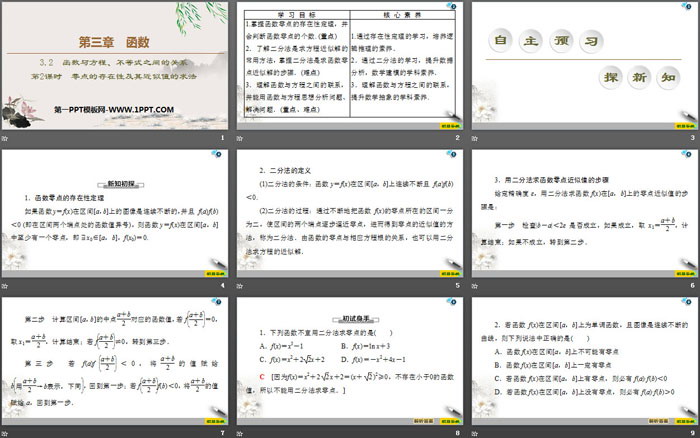 关键词:高中人教B版数学必修一PPT课件免费下载,函数与方程不等式之间的关系PPT下载,函数PPT下载,零点的存在性及其近似值的求法PPT下载,.PPT格式;
