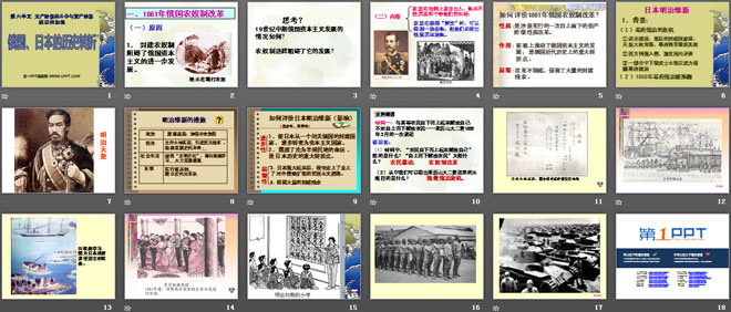 关键词:无产阶级的斗争与资产阶级统治的加强教学课件,俄国日本的历史转折教学课件,人教版九年级上册历史PPT课件下载,九年级历史幻灯片课件下载,无产阶级的斗争与资产阶级统治的加强PPT课件下载,俄国日本的历史转折PPT课件下载,.PPT格式;