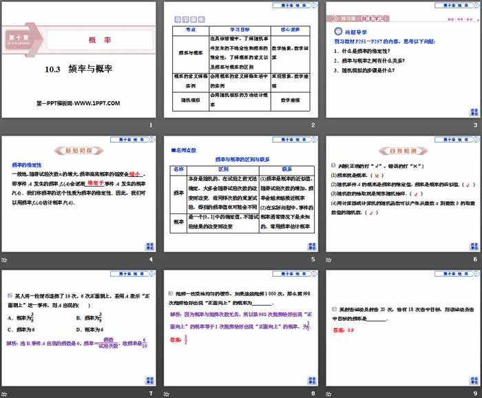 关键词:高中人教A版数学必修二PPT课件免费下载,频率与概率PPT下载,概率PPT下载,.PPT格式;