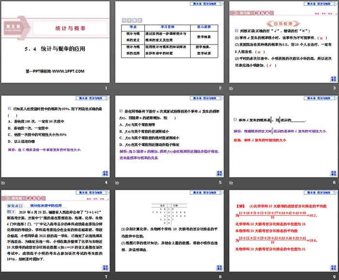 关键词:高中人教B版数学必修二PPT课件免费下载,统计与概率的应用PPT下载,统计与概率PPT下载,.PPT格式;