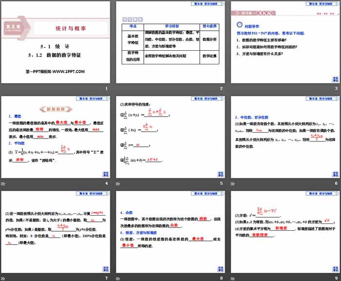 关键词:高中人教B版数学必修二PPT课件免费下载,统计PPT下载,统计与概率PPT下载,数据的数字特征PPT下载,.PPT格式;