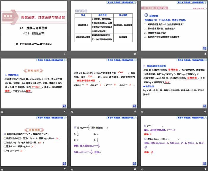 关键词:高中人教B版数学必修二PPT课件免费下载,对数与对数函数PPT下载,指数函数对数函数与幂函数PPT下载,对数运算PPT下载,.PPT格式;
