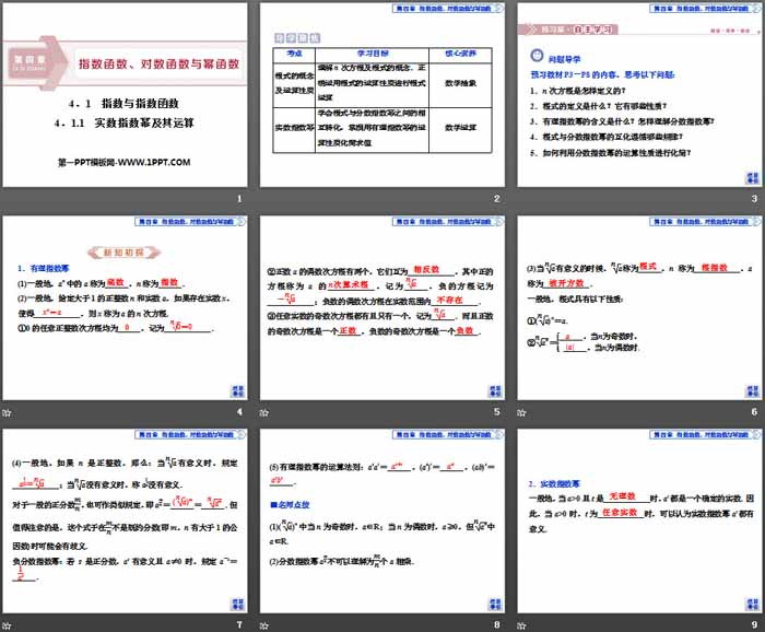 关键词:高中人教B版数学必修二PPT课件免费下载,指数与指数函数PPT下载,指数函数对数函数与幂函数PPT下载,实数指数幂及其运算PPT下载,.PPT格式;