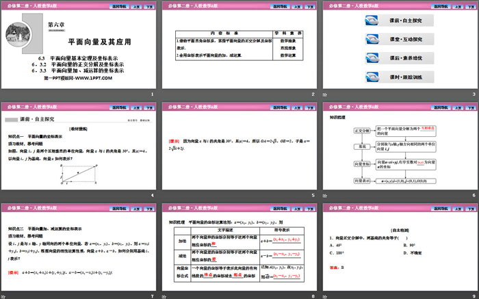 《平面向量基本定理及坐标表示》平面向量及其应用PPT下载(平面向量的正交分解及坐标表示、平面向量加减运算的坐标表示)