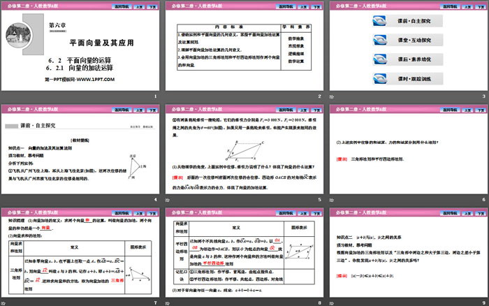 关键词:高中人教A版数学必修二PPT课件免费下载,平面向量的运算PPT下载,平面向量及其应用PPT下载,向量的加法运算PPT下载,.PPT格式;