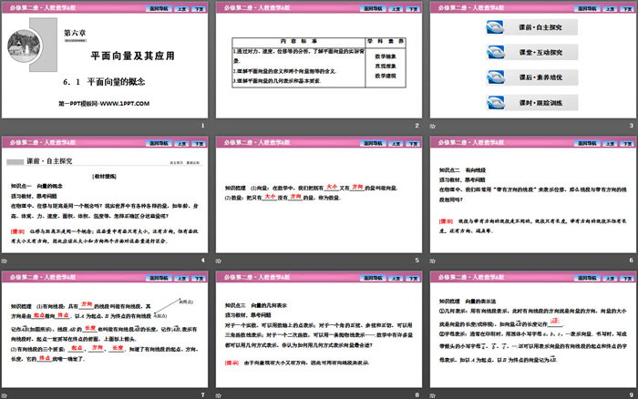 关键词:高中人教A版数学必修二PPT课件免费下载,平面向量的概念PPT下载,平面向量及其应用PPT下载,.PPT格式;
