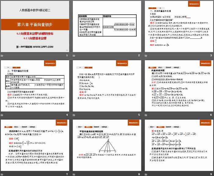 关键词:高中人教B版数学必修二PPT课件免费下载,向量基本定理与向量的坐标PPT下载,平面向量初步PPT下载,向量基本定理PPT下载,.PPT格式;