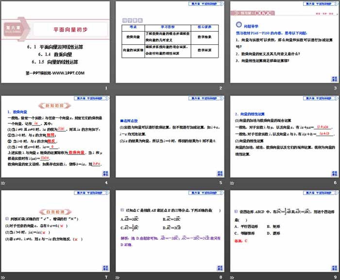 平面向量及其线性运算PPT,第四部分内容:自我检测