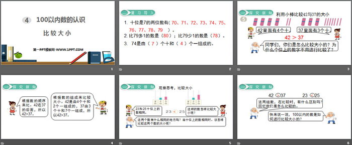 关键词:人教版一年级下册数学PPT课件免费下载,比较大小PPT下载,100以内数的认识PPT下载,.PPT格式;