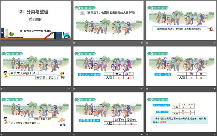 关键词:人教版一年级下册数学PPT课件免费下载,分类与整理PPT下载,.PPT格式;