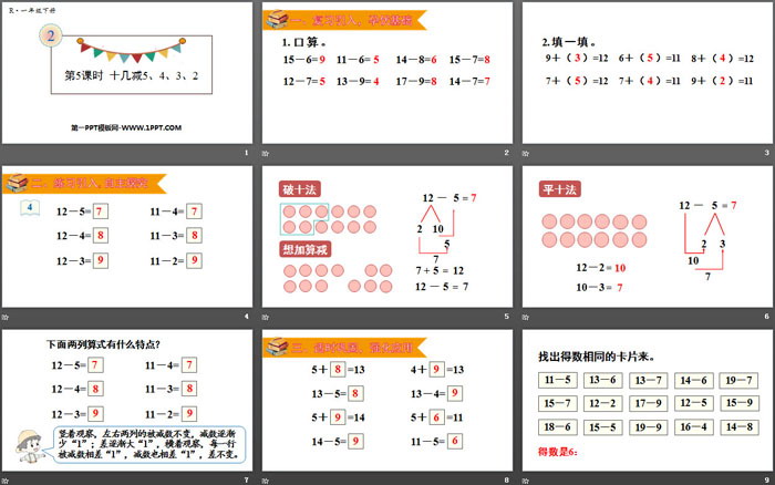 《十几减5、4、3、2》20以内的退位减法PPT下载