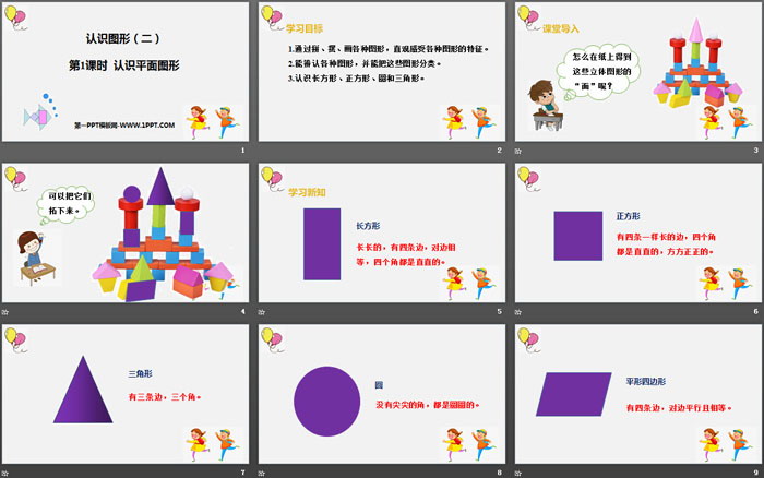 关键词:人教版一年级下册数学PPT课件免费下载,认识平面图形PPT下载,认识图形PPT下载,.PPT格式;