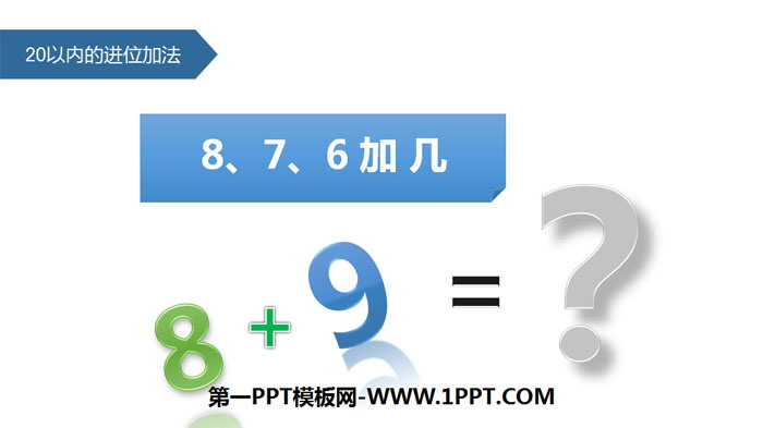 关键词:人教版一年级上册数学PPT课件免费下载,20以内的进位加法PPT下载,876加几PPT下载,.PPT格式;
