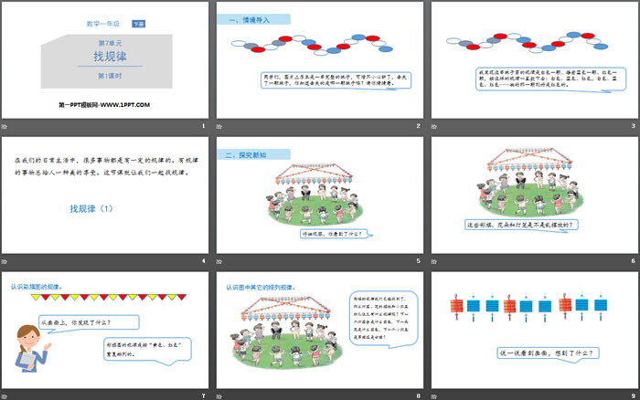 关键词:人教版一年级下册数学PPT课件免费下载,找规律PPT下载,.PPT格式;