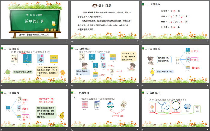 关键词:人教版一年级下册数学PPT课件免费下载,简单的计算PPT下载,认识人民币PPT下载,.PPT格式;