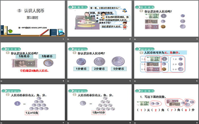 关键词:人教版一年级下册数学PPT课件免费下载,认识人民币PPT下载,.PPT格式;