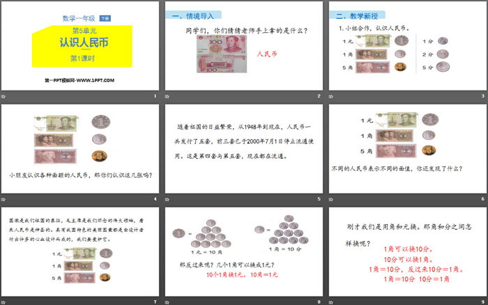 关键词:人教版一年级下册数学PPT课件免费下载,认识人民币PPT下载,.PPT格式;