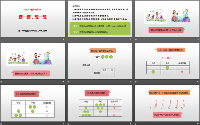 关键词:人教版一年级下册数学PPT课件免费下载,摆一摆想一想PPT下载,100以内数的认识PPT下载,.PPT格式;