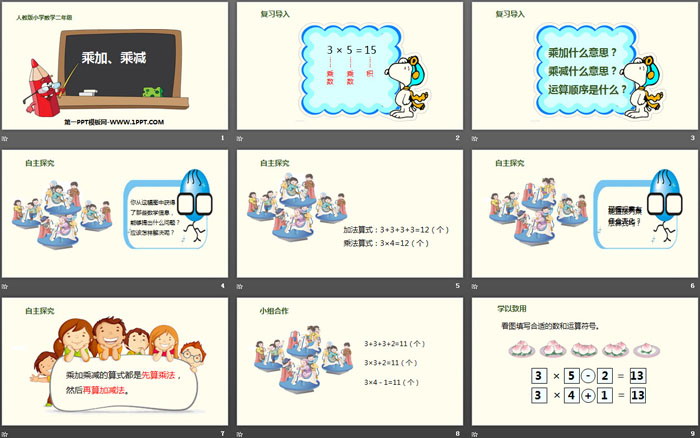 关键词:人教版二年级上册数学PPT课件免费下载,乘加乘减PPT下载,表内乘法PPT下载,.PPT格式;