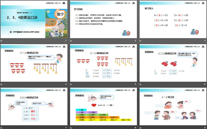 关键词:人教版二年级上册数学PPT课件免费下载,表内乘法PPT下载,234的乘法口诀PPT下载,.PPT格式;