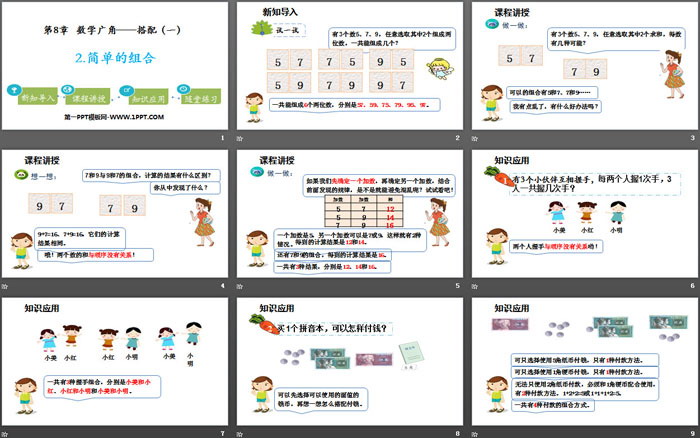 关键词:人教版二年级上册数学PPT课件免费下载,简单的组合PPT下载,数学广角搭配PPT下载,.PPT格式;