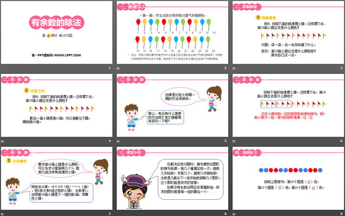 关键词:人教版二年级下册数学PPT课件免费下载,有余数的除法PPT下载,解决问题PPT下载,.PPT格式;