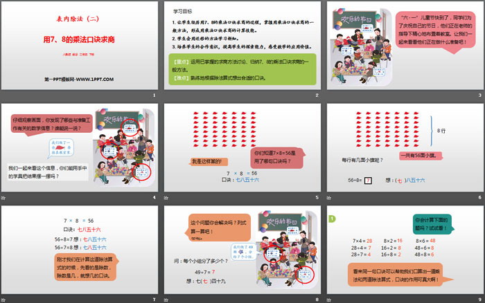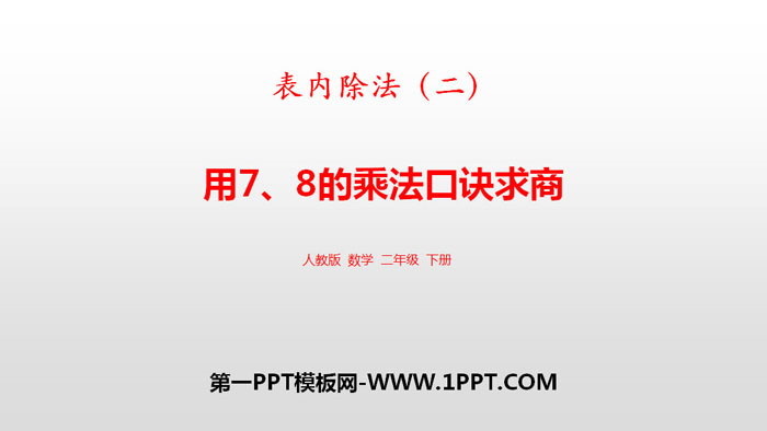 关键词:人教版二年级下册数学PPT课件免费下载,用78的乘法口诀求商PPT下载,表内除法PPT下载,.PPT格式;