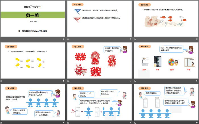 关键词:人教版二年级下册数学PPT课件免费下载,剪一剪PPT下载,图形的运动PPT下载,.PPT格式;